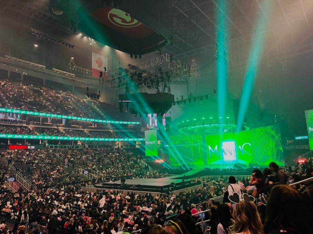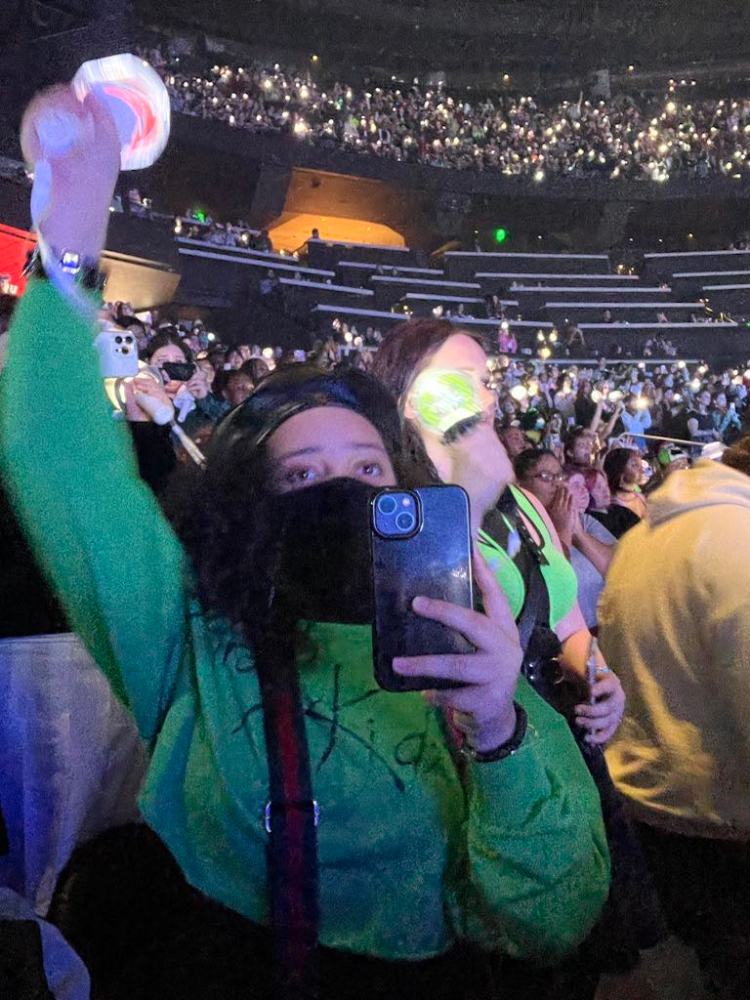 Soon, the lights dimmed and the screams were earpiercing. The group’s anthem started playing and every person inside, including me, started loudly chanting, “Stray Kids!” Then, a circular contraption built into the top of the stage set up started descending while smoke and green light scattered across the stage and into the crowd. Finally, after the excitement of the concert beginning made every person get out of the seat and stand with anticipation, the circular contraption lifted. Standing there, on the stage a few hundred feet away from me, was eight men from South Korea who begun to bring each audience member on the adventure of their lives through music.