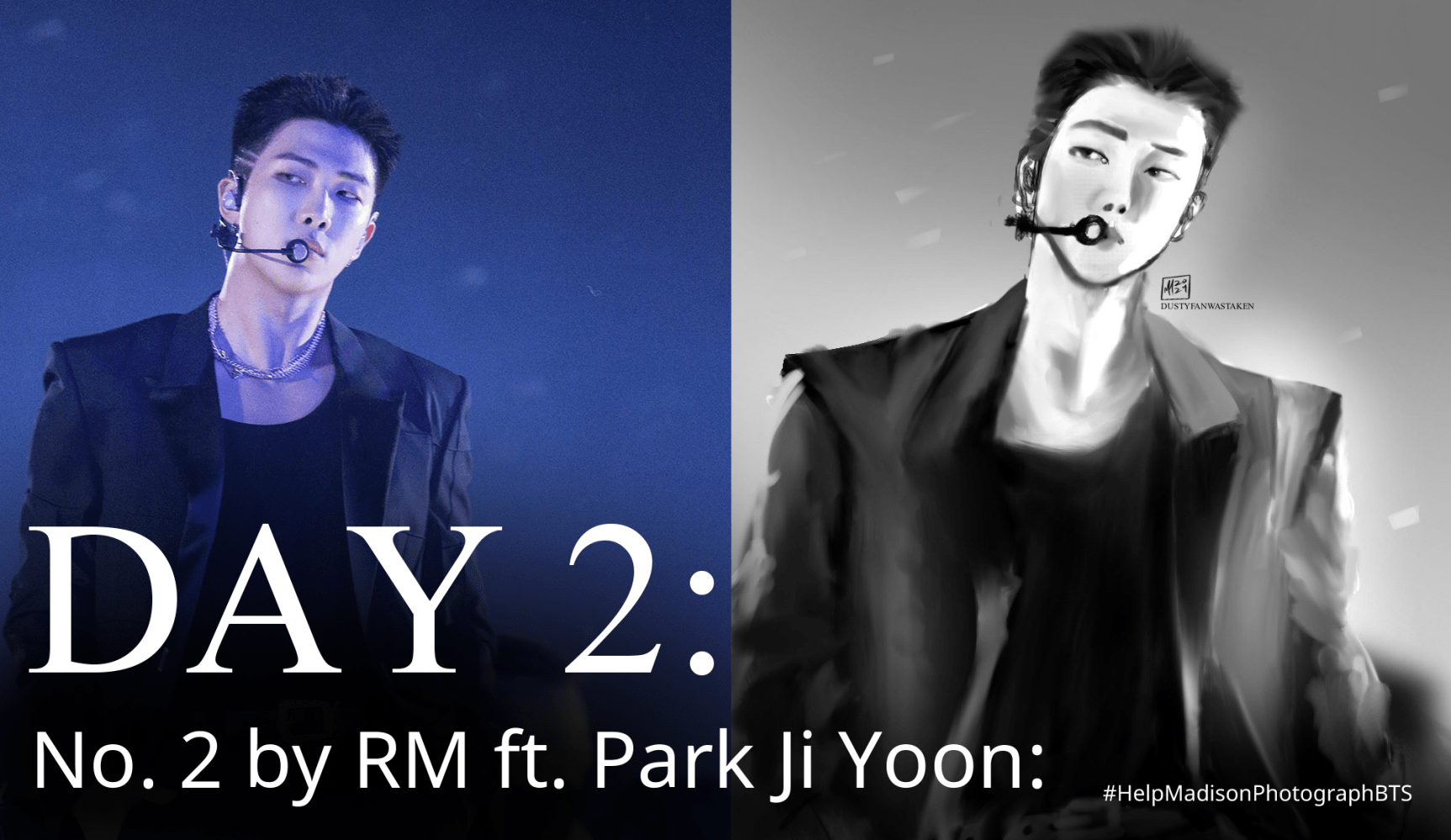 For day 2 of analyzing a BTS song every day until their concert in Tampa, I chose No.2 by RM featuring Park Ji Yoon. This is because RM is the member I drew on my other daily challenge to draw BTS every day until they return from their military service. And in awaiting their concert, I want to revisit those drawings through analyzing a song related to them. This particular drawing was made exactly 2 years ago today.