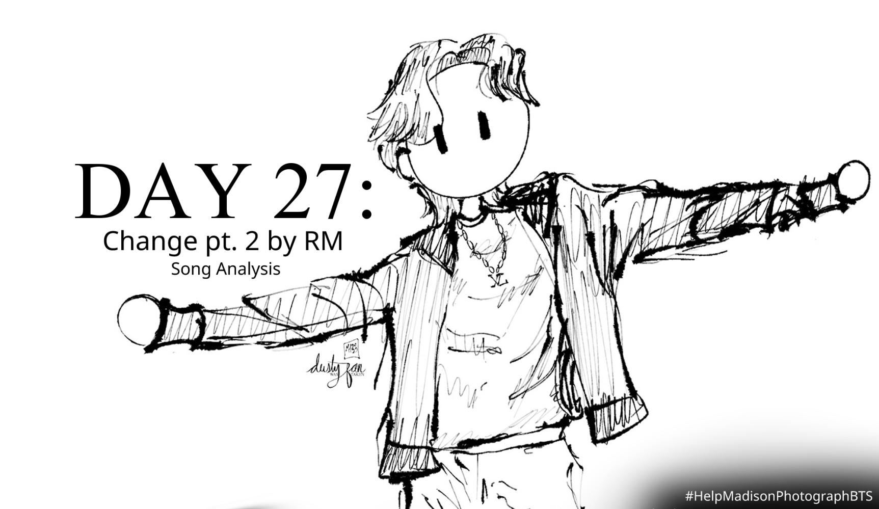 For day 27 of analyzing a BTS song every day until their concert in Tampa, I decided to analyze “Change pt. 2” by RM. This song was one of the first RM songs I ever heard, as I became a fan of the group around the same time the album this song is on was released. I remember instantly loving the electronic instrumentals and gritty rap RM provided on top. Both aspects come together beautifully within the song and I feel that they really support the lyrics and their meaning.