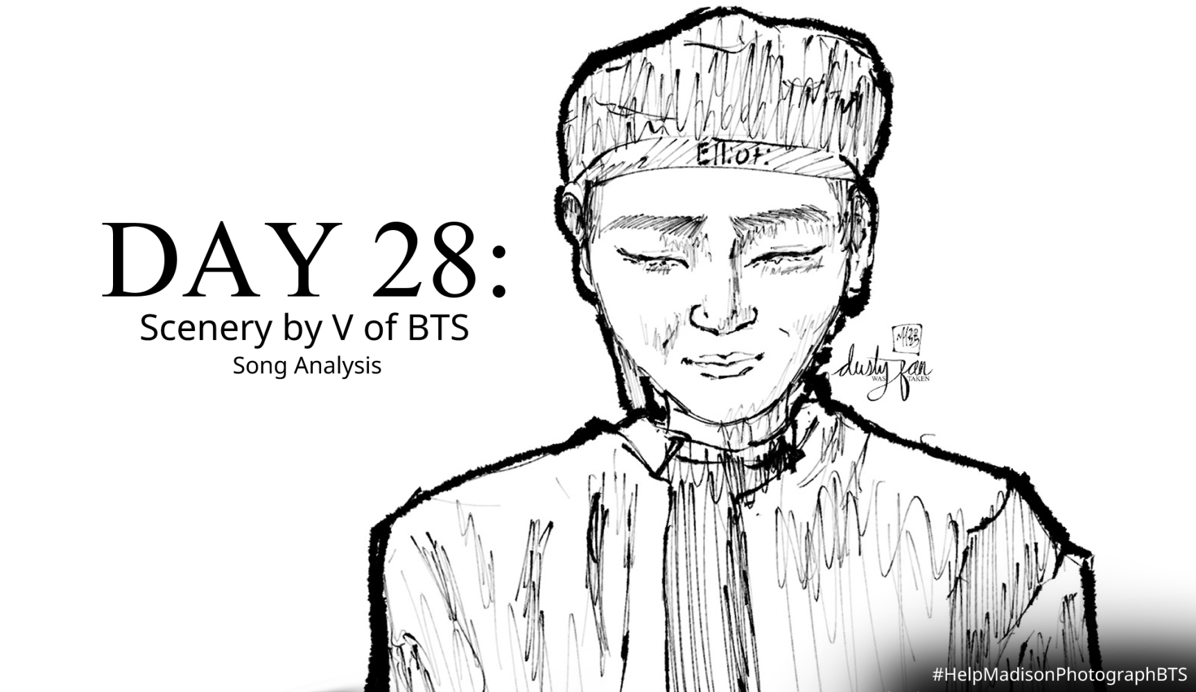 For day 28 of analyzing a BTS song every day until their concert in Tampa, I decided to analyze the song, “Scenery” by V of BTS. With smooth and silky vocals, V conveys his desire to capture the environment around him in film, never to be forgotten.