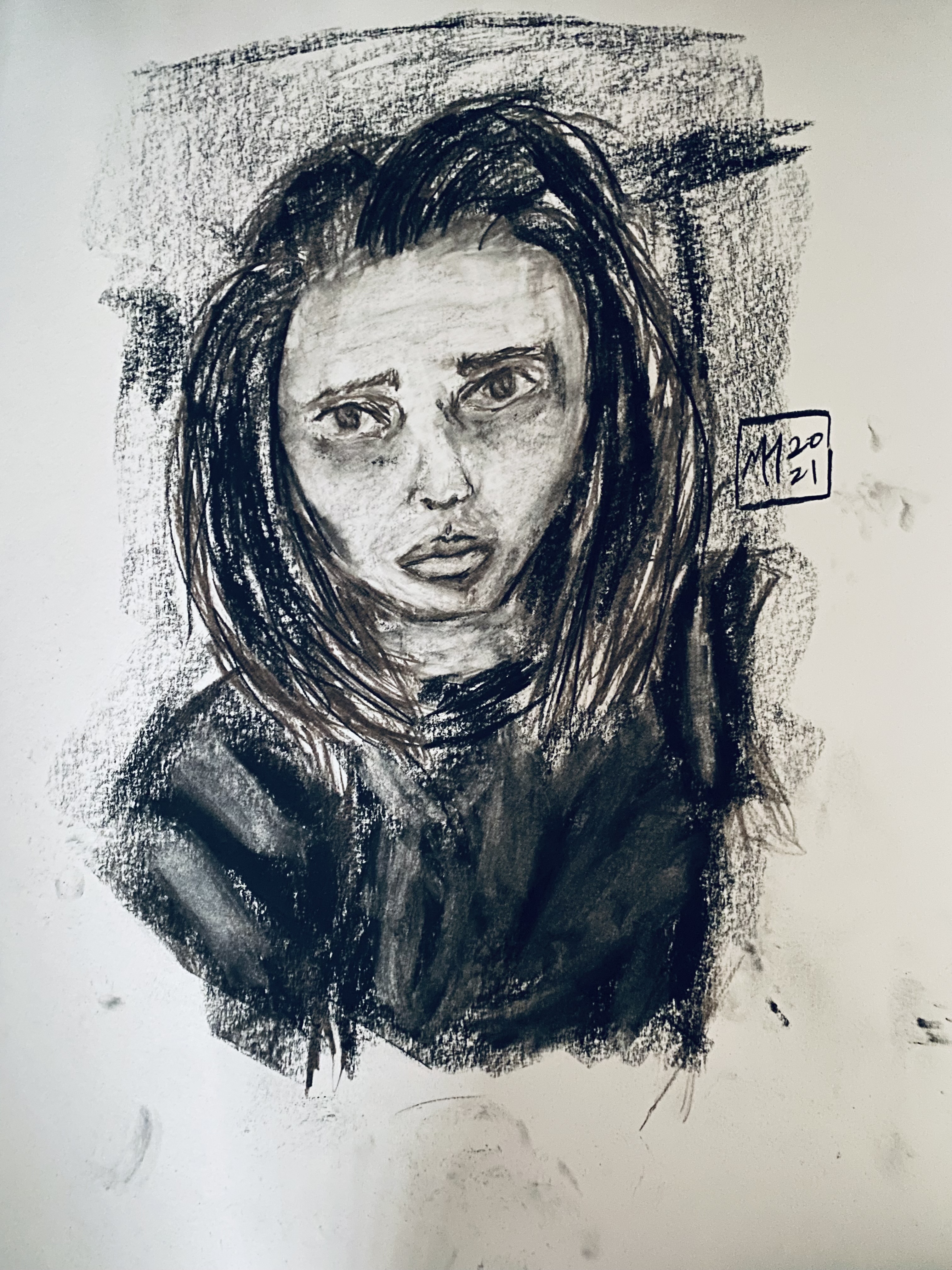 These self-portraits were done by Madison at the beginning of the Pandemic in 2020 and a year later.